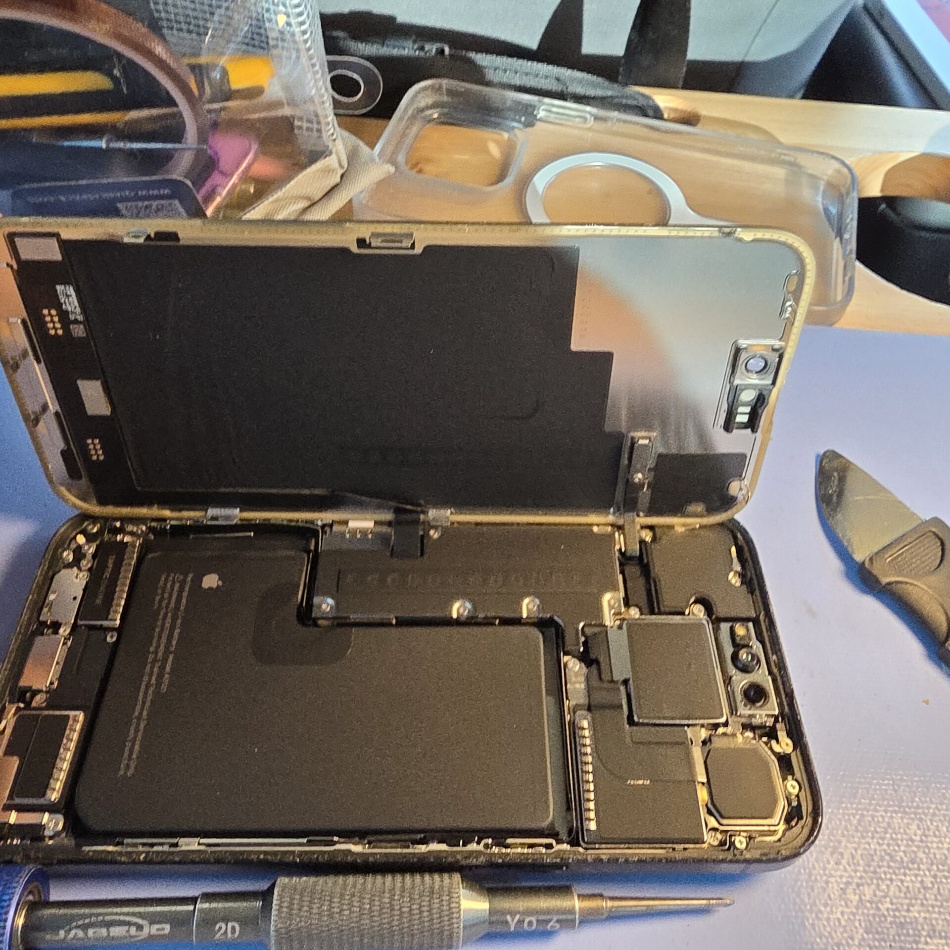 本日は大阪市福島区にてIPhone15ProMaxの画面破損修理に伺いました😁