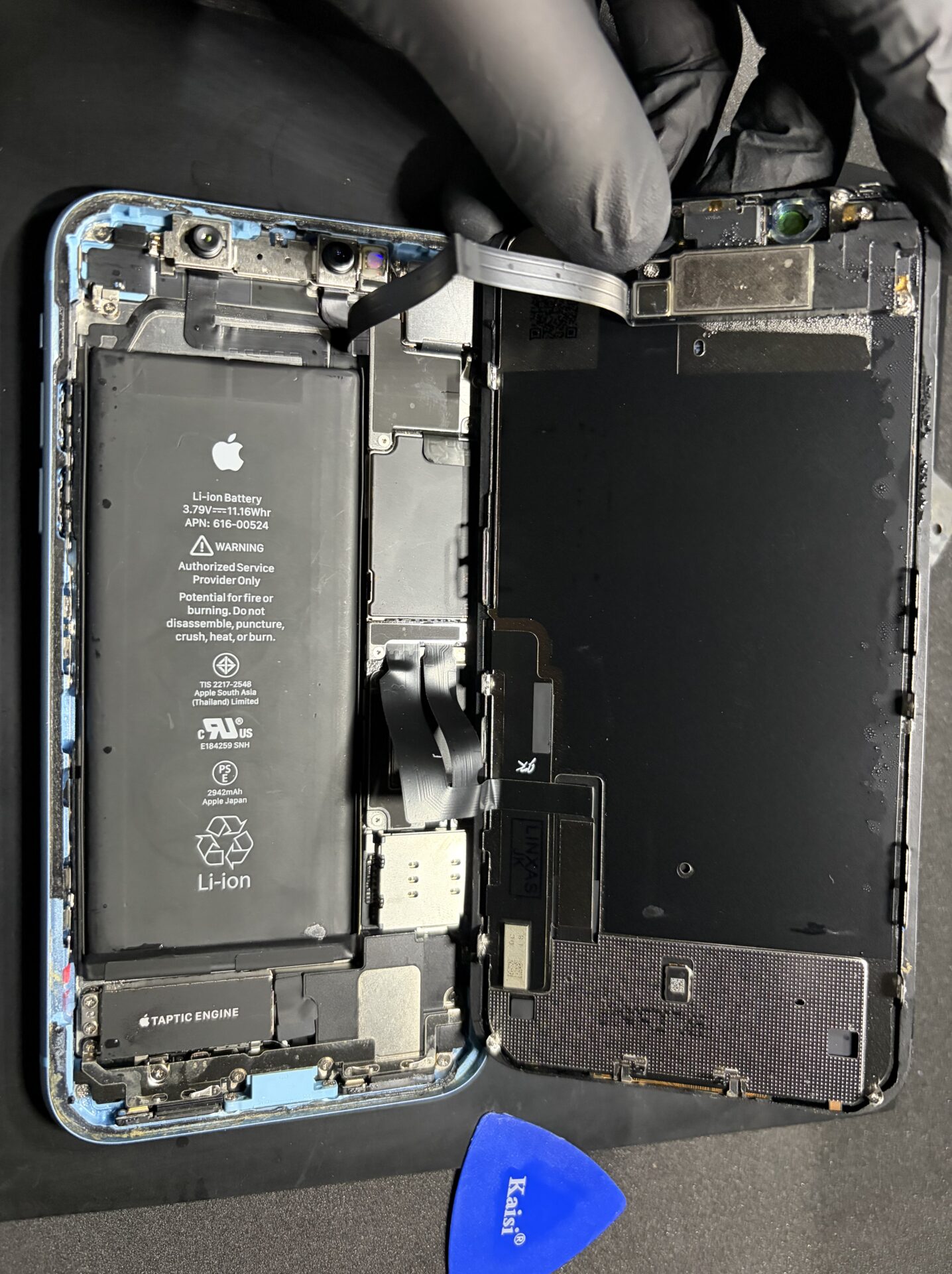 中を確認するとしっかり水が入っていましたが、洗浄作業と画面の交換で直すことができました!😊